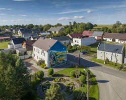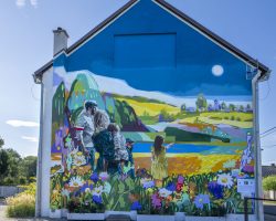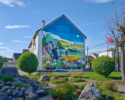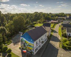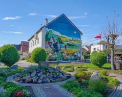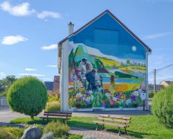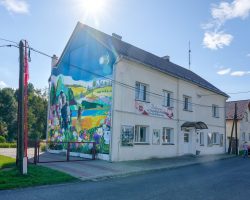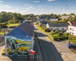 Mural powstał na budynku świetlicy wiejskiej i nawiązuje do historii wsi – wędrówki ludzi z Wicynia do Nowej Wsi Głubczyckiej, która miała miejsce w 1945 r.