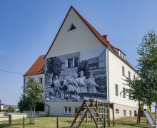 - Murale zostały zaprojektowane na podstawie starych zdjęć i widokówek z Biedrzychowic.