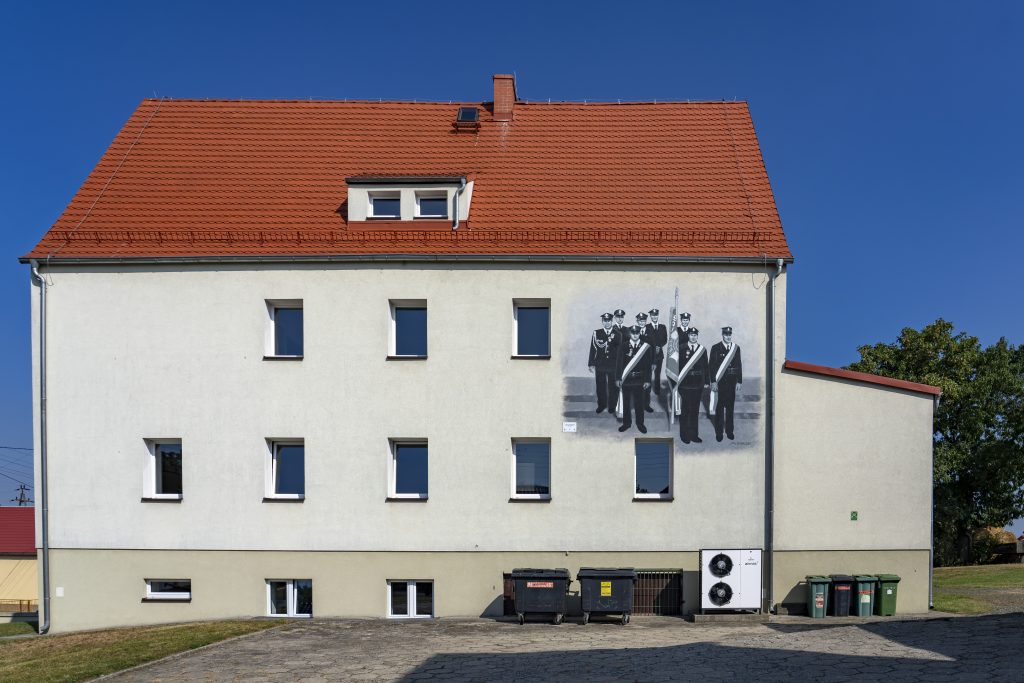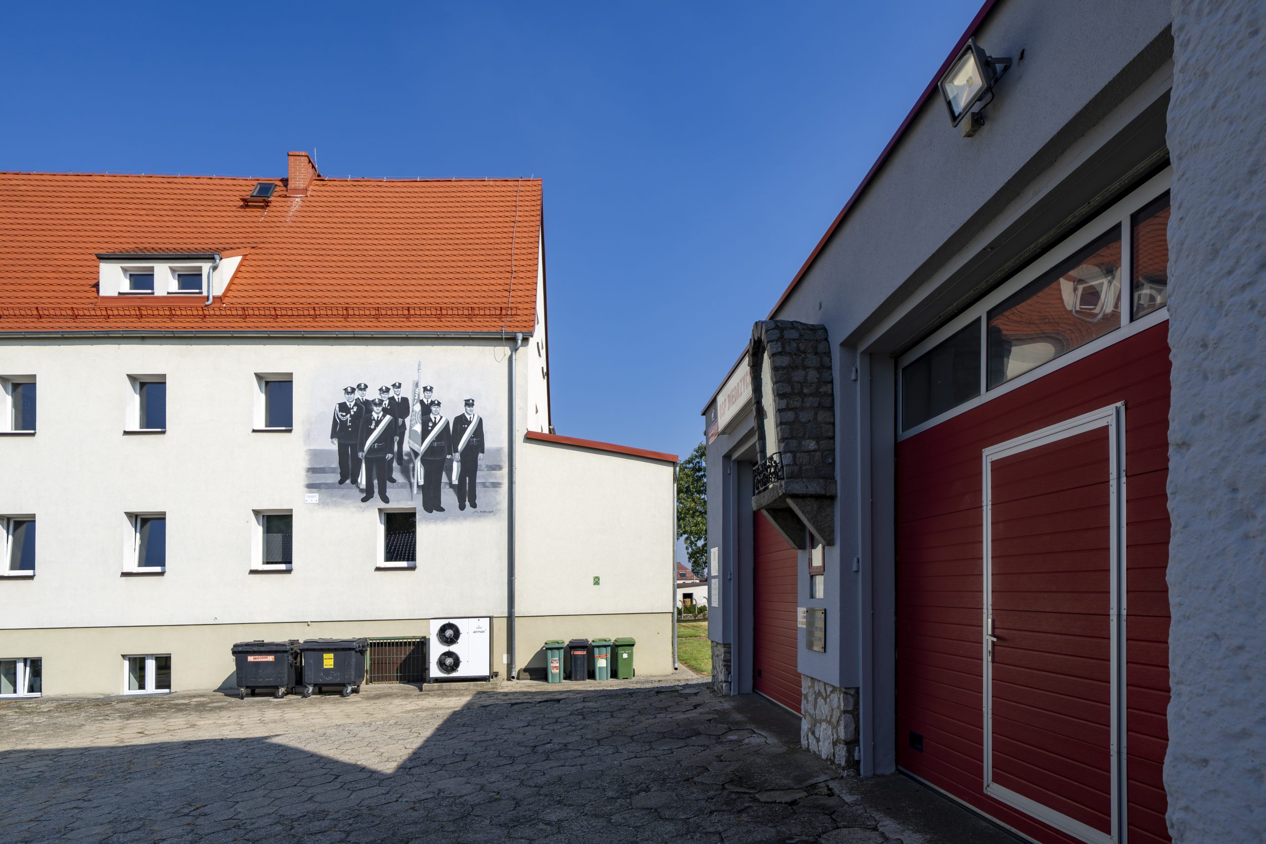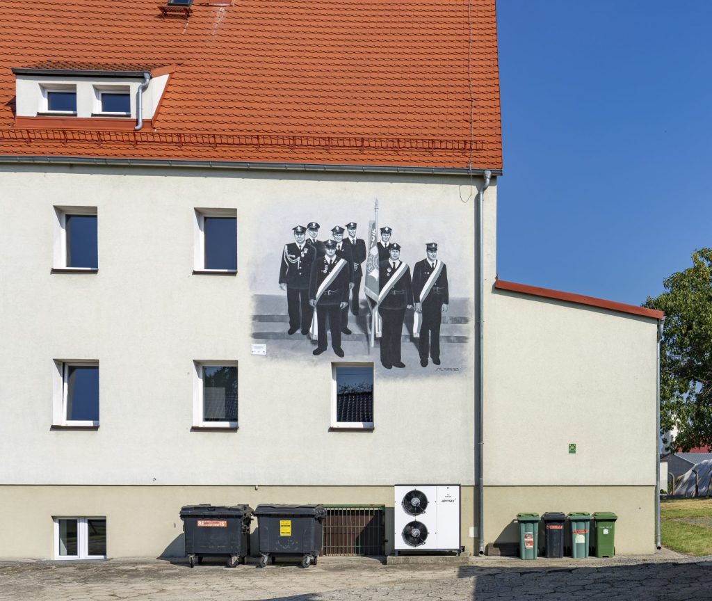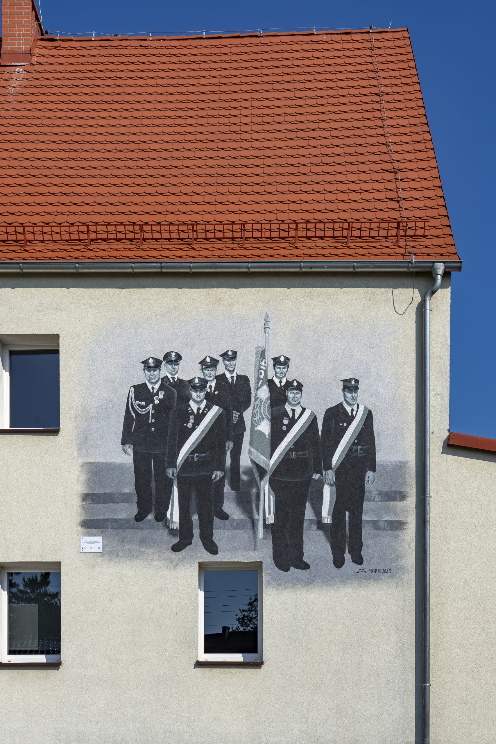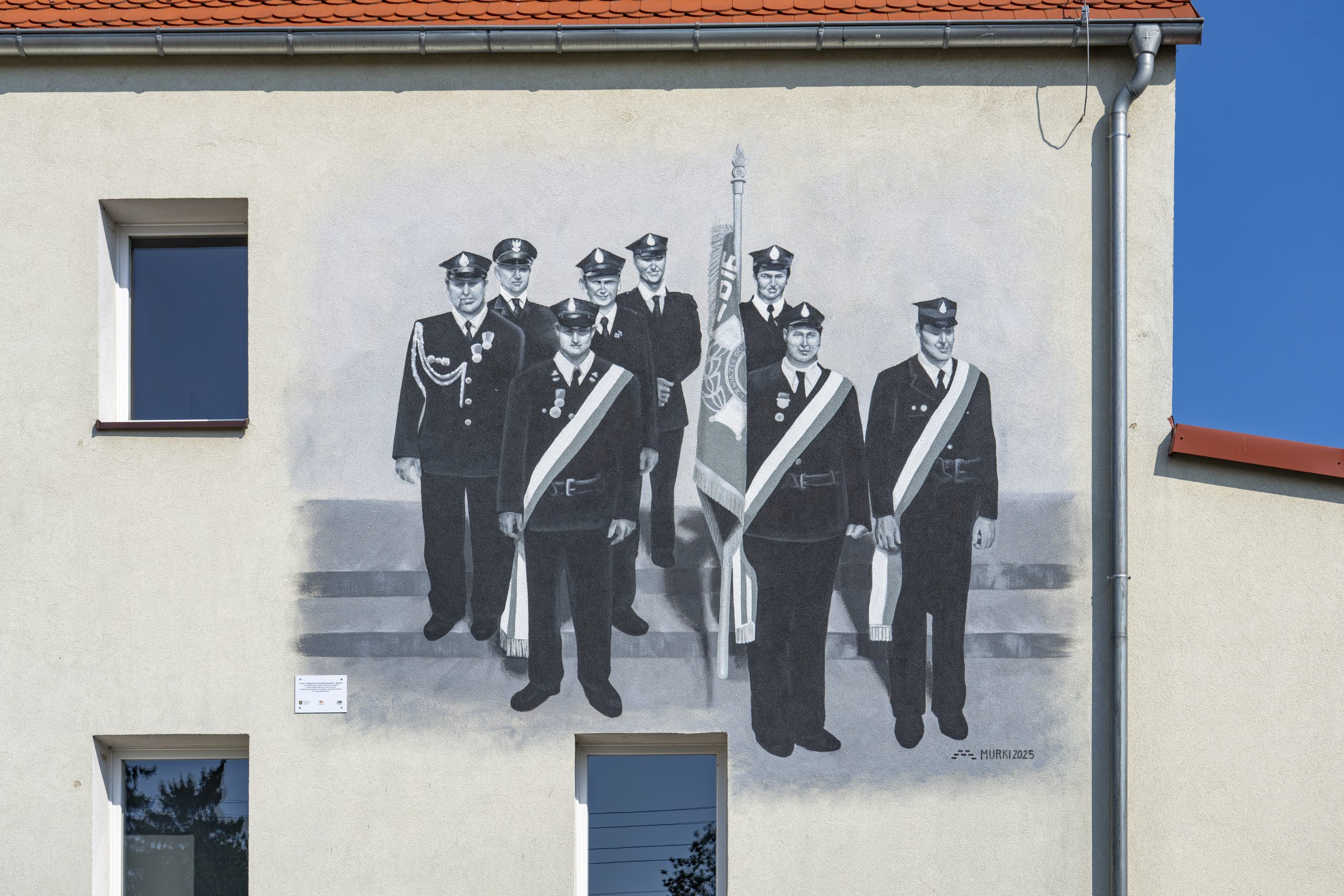 i kolorystyka pozostają jednolite. - Mural na ścianie budynku Ochotniczej Straży Pożarnej oddaje hołd pracy strażaków oraz ich poświęceniu dla społeczności.