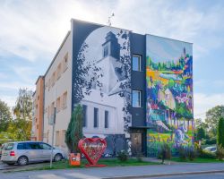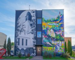 Mural nawiązuje do historii wsi i przedstawia dawny i obecny wygląd Miasteczka Miłosierdzia w Branicach z jego bioróżnorodnością i tradycjami pszczelarskimi w ramach pracy warsztatowej terapii zajęciowej miejscowego szpitala.