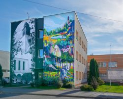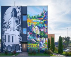 Mural nawiązuje do historii wsi i przedstawia dawny i obecny wygląd Miasteczka Miłosierdzia w Branicach z jego bioróżnorodnością i tradycjami pszczelarskimi w ramach pracy warsztatowej terapii zajęciowej miejscowego szpitala.
