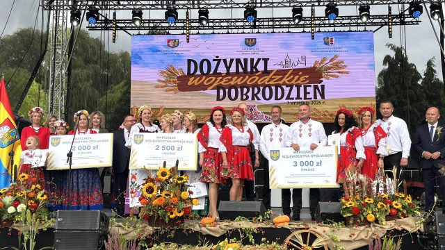 Podczas Dożynek Wojewódzkich w Dobrodzieniu zaprezentowano wszystkie korony dożynkowe, a następnie ogłoszono wyniki konkursów: „Piękna Wieś Opolska 2025” i Wojewódzkiego Konkursu Koron Dożynkowych. Emocji nie brakowało – zwycięzcy zostali nagrodzeni gromkimi brawami i okrzykami radości.