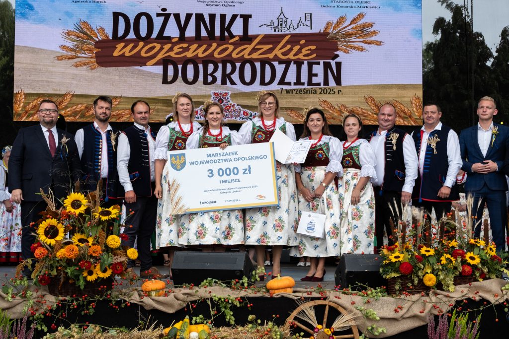 Podczas Dożynek Wojewódzkich w Dobrodzieniu zaprezentowano wszystkie korony dożynkowe, a następnie ogłoszono wyniki konkursów: „Piękna Wieś Opolska 2025” i Wojewódzkiego Konkursu Koron Dożynkowych. Emocji nie brakowało – zwycięzcy zostali nagrodzeni gromkimi brawami i okrzykami radości.