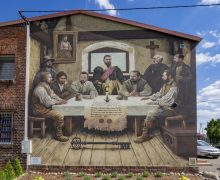 - Mural upamiętnia wyjątkowe wydarzenia w historii Kadłuba Wolnego – wykupienia się chłopów na wolność.