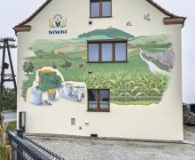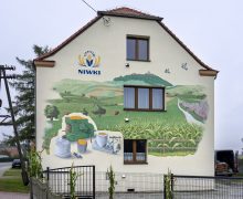 są powstałe jako pierwsze właśnie w Niwkach, suszarnie podłogowe na zimne powietrze. Te konstrukcje funkcjonują po dziś dzień, wzbudzając w mieszkańcach poczucie mocnej, wyróżniającej Niwieckich rolników tradycji. - Mural powstał na budynku użyteczności publicznej, w którym znajdują się pomieszczenia sołeckie oraz siedziby organizacji działających na terenie Niwek.
