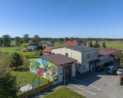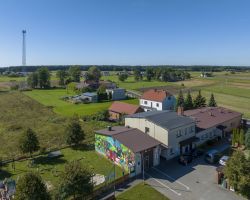 Mural zdobi Centrum Aktywności Wiejskiej, gdzie znajdują się świetlica wiejska, oddział przedszkolny, strażnica OSP, plac sportowo- rekreacyjny, plac zabaw, kącik bioróżnorodności i nawiązuje do tematu przewodniego wsi.