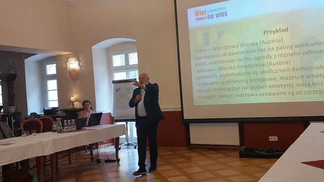 W świat wiosek tematycznych uczestników wprowadzili Pan Krzysztof Margol – prezes Fundacji NIDA oraz Pani Barbara Margol – Prezes Nidzickiego Funduszu Lokalnego.